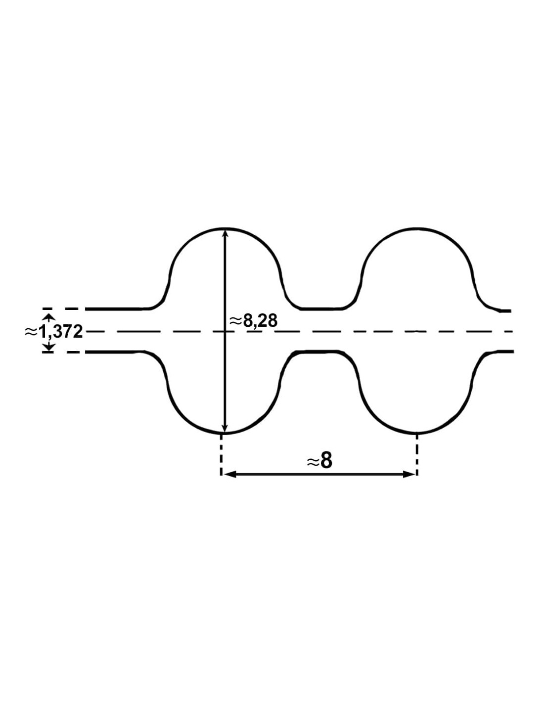 Pas zębaty obustronny z podziałką 8mm o długości 880 mm cięty z rękawa na żądaną szerokość.